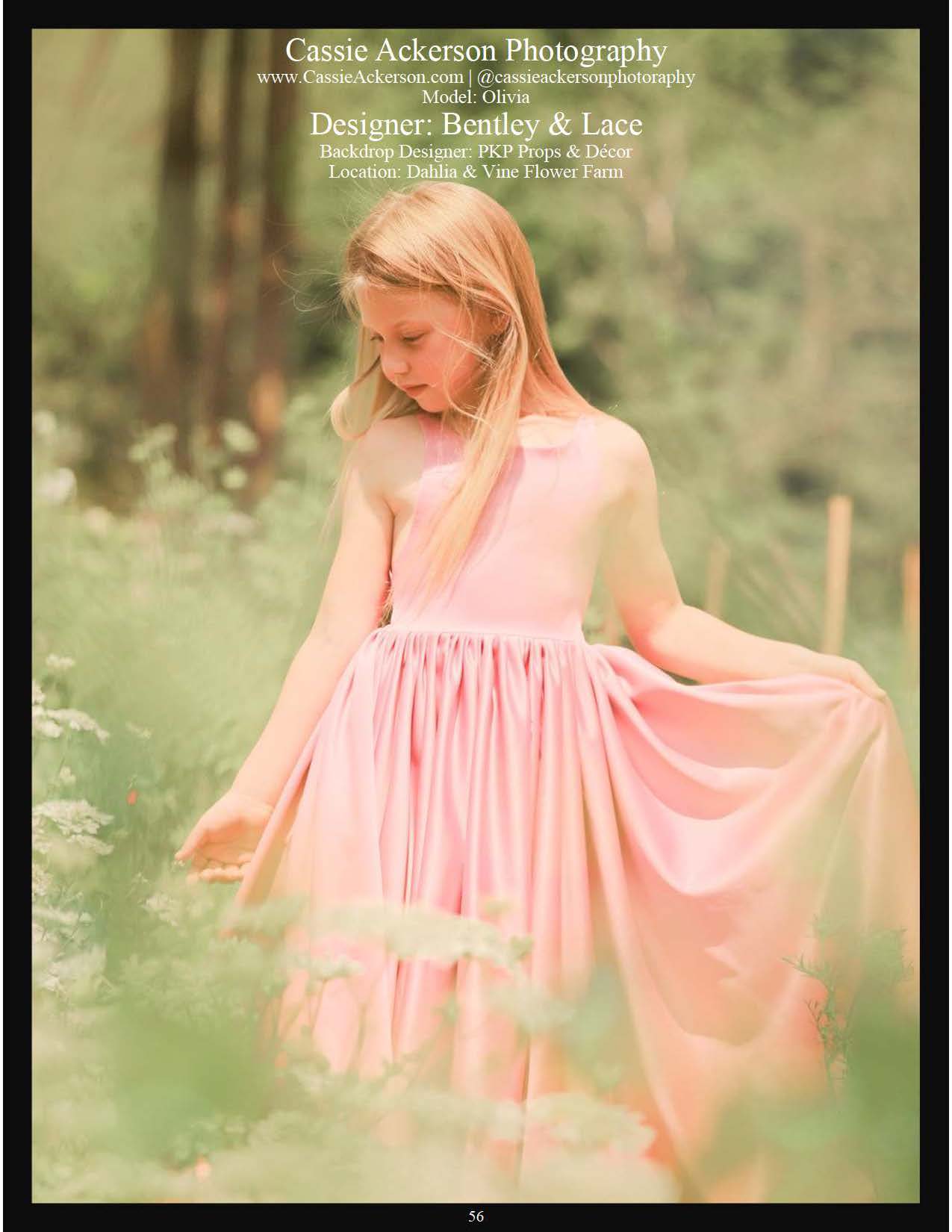 We’re thrilled to announce that Cassie Ackerson Photography has been honored with a stunning two-page feature in the prestigious Designer Child Magazine‘s UNFORGETTABLE issue. The feature showcases an extraordinary photoshoot with the adorable and talented model, Olivia, set amidst the breathtaking beauty of the renowned Dahlia & Vine Flower Farm. With Olivia dressed in a simple Ziggy gown by Bentley and Lace, and a whimsical backdrop created by PKP Props & Decor, the photos capture a perfect blend of elegance and whimsy.